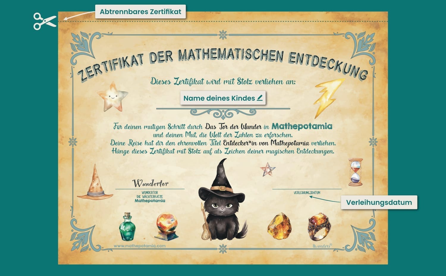 Sobald du das aktuelle Mathe-Level deines Kindes kennst, feiere seine Mühe mit dem Zertifikat für mathematische Erkundung. Es ist eine Errungenschaft, auf die es stolz sein kann, und eine Belohnung, die die Motivation steigert.