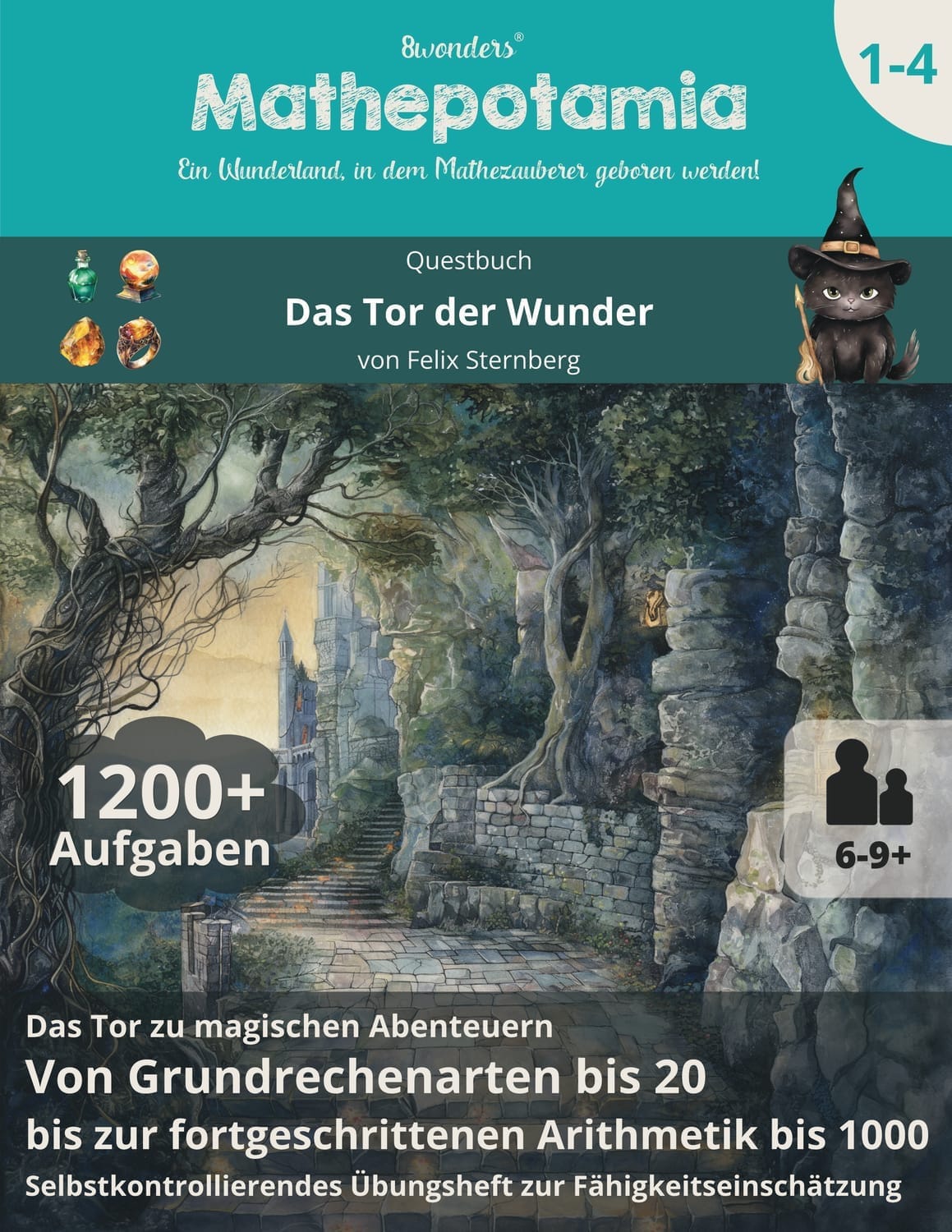 Das kostenlose Mathepotamia-Questbuch: Das Tor der Wunder hilft dir, das aktuelle Mathe-Level deines Kindes einzuschätzen und das passende Übungsheft zu finden. Gestaltet wie die großen Übungshefte, enthält das Questbuch Missionen, Zeichenaufgaben, Selbstkontroll-Übungen und Fortschrittsanzeigen. Es gibt dir und deinem Kind einen ersten Vorgeschmack auf das Abenteuer und einen Blick in die Serie.