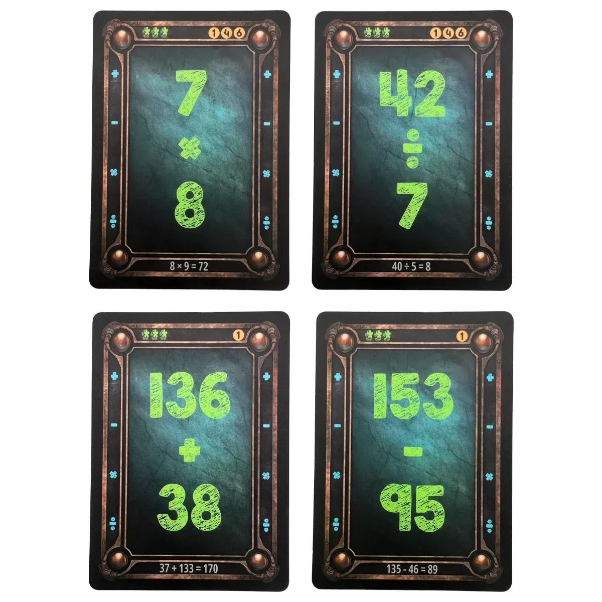 Your child solves a problem, flips the card, gets it right, and smiles. They play at their own level, check answers themselves, and actually want to keep going.